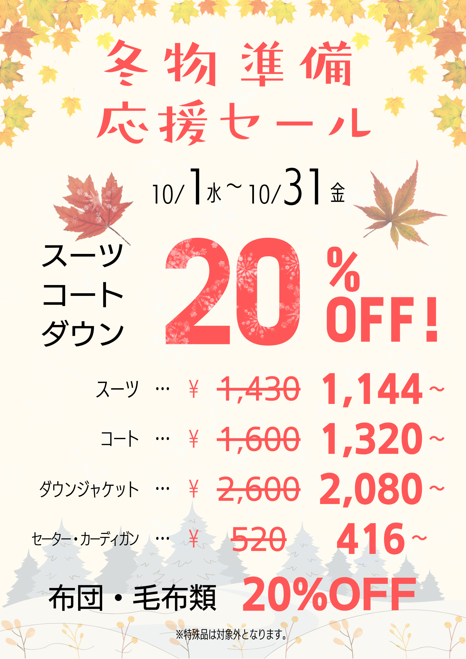 ハンガー仕上げ ¥ 170 たたみ仕上げ ¥ 195 |